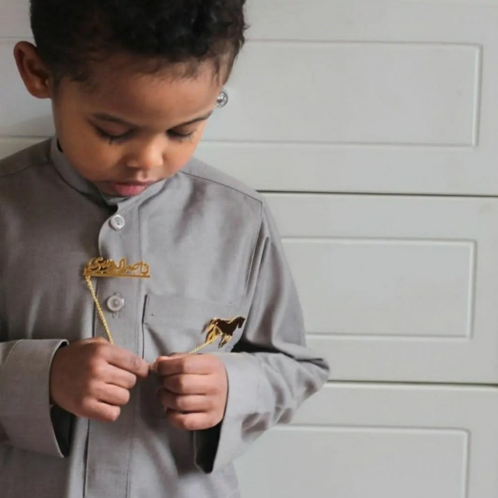 من ألطف الاضافات لملابس الاطفالتفاصيل المنتج:امكانيه كتابه الاسم حسب الطلبمتوفر باللونين ذهبي او فضيطلاء ذهب عيار 21 قيراطمضمون مايتغير لونه من رتالفتره التجهيز يومين