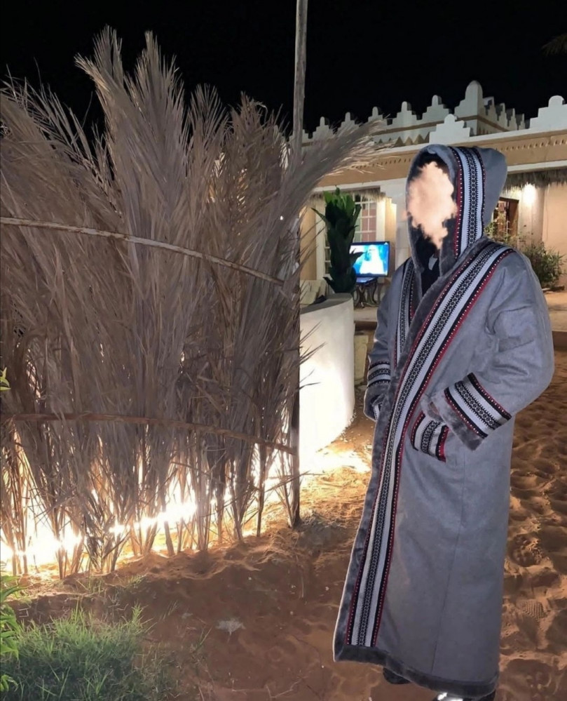 فرو نسائي مقلم لون رصاصي بنقشة السدو